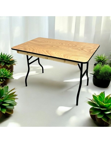 Brand New 4ft Varnished Wooden Table with sturdy metal folding legs, extremely strong and designed for heavy commercial use.