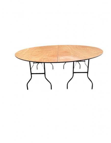 Brand New 7ft Round Varnished Banquet Table with sturdy metal folding legs.