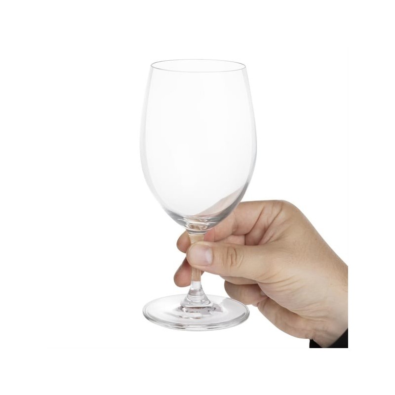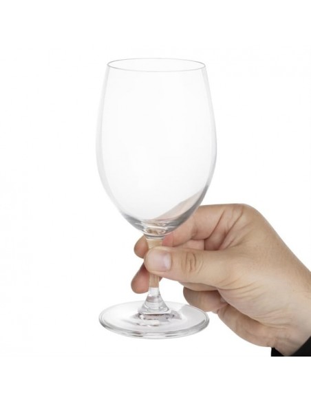 Enhance your bar and table settings with the Olympia Novello range. These Novello stemmed water glasses are expertly crafted from high-quality crystal, offering exceptional clarity that enhances the presentation of any beverage, while also providing the durability needed for everyday use. With a generous 365ml capacity, they are ideal for serving water, soft drinks or cocktails. Along with their stylish design, these Olympia Novello stemmed water glasses are dishwasher safe, ensuring quick and efficient cleaning.