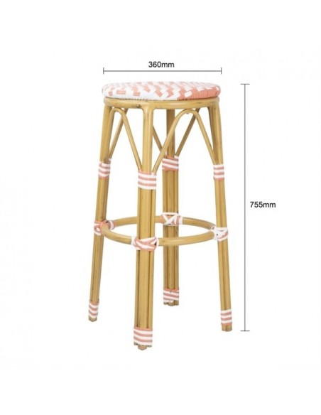 Add a touch of Parisian flair to your seating areas with these rattan-style bar stools from Bolero. Featuring a vibrant chevron pattern, these stools are supported by a lightweight yet sturdy aluminium frame, finished with a wood grain effect. The seats are made from durable PE artificial rattan.
