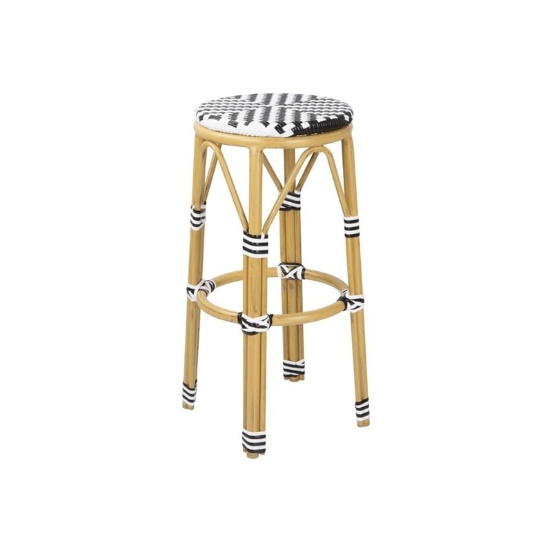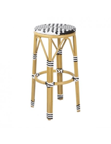 Add a touch of Parisian flair to your seating areas with these rattan-style bar stools from Bolero. Featuring a vibrant chevron pattern, these stools are supported by a lightweight yet sturdy aluminium frame, finished with a wood grain effect. The seats are made from durable PE artificial rattan.