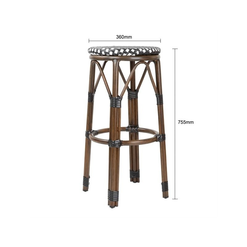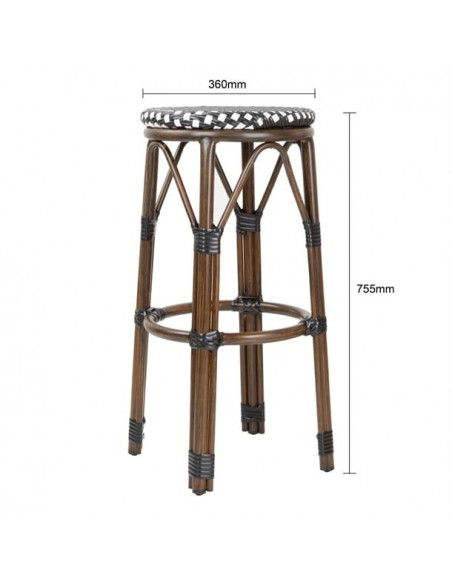 Add a touch of Parisian flair to your seating areas with these rattan-style bar stools from Bolero. Featuring a classic black dot pattern, these stools are supported by a lightweight yet sturdy aluminium frame, finished with a wood grain effect. The seats are made from durable PE artificial rattan.