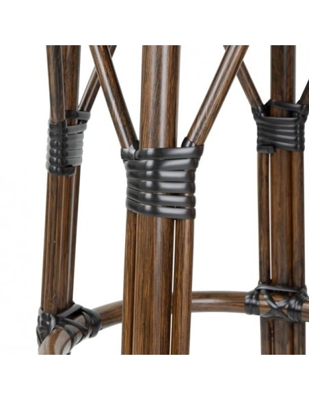 - Aluminium tubing frame, brush painted with wood grain finish, seat made from PE artificial rattan
