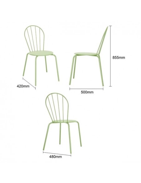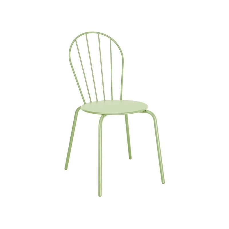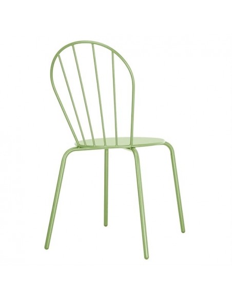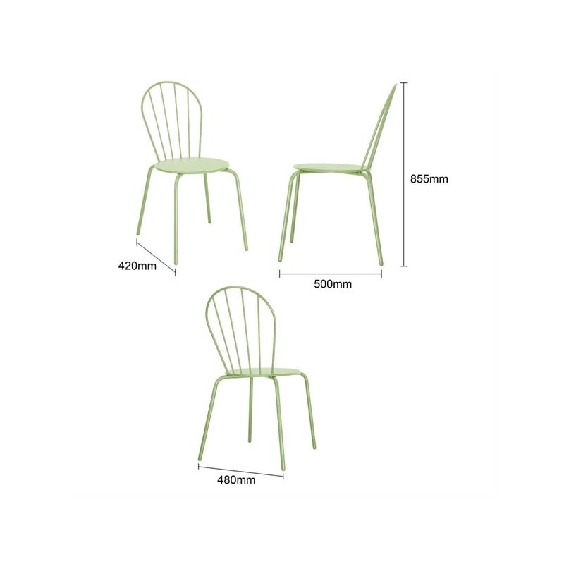 Lightweight and easy to stack up to eight chairs high, Bolero Adeline side chairs make moving, storing and setting up simple. A curved, slatted back keeps things comfortable, while the trendy light green colour adds a stylish touch to restaurants, cafés, bars and event spaces. Made from powder-coated steel with an e-coating, they stand up to stains, scratches and heat. UV resistance helps keep the colour from fading, so they stay looking fresh for longer. Black plastic feet provide extra protection for floors, reducing the risk of scratches and marks.