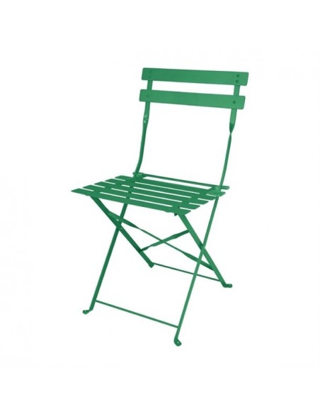 Give your seating areas an upgrade with this pack of two pavement-style chairs from the Bolero Perth collection. Finished in a forest green colour, these Perth folding chairs offer a modern, vibrant look that stands out on terraces and pavements - helping to pull in potential customers. Made from powder-coated steel, the chairs boast excellent durability against rust, corrosion and impact, ensuring lasting use in commercial settings. The folding design allows for quick and easy transport when setting up or packing away seating areas and helps save valuable storage space when not in use.