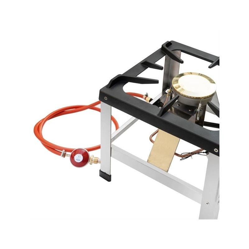 The all stainless steel frame is highly durable and provides the perfect easy-clean base for the stove, whilst the heavy duty cast iron cooking grate is specifically designed for everyday commercial use. A superbly versatile portable gas stove for the professional.