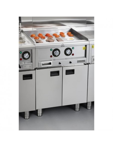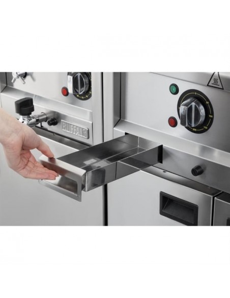 Dual 10mm thick mild steel plates and a powerful 4.5kW element ensure fast heat-up times and even heat distribution across the entire surface - essential for consistent cooking results. Excess fat is efficiently channelled into a 1-litre collection drawer, preventing the build-up of grease on the cooking surface.