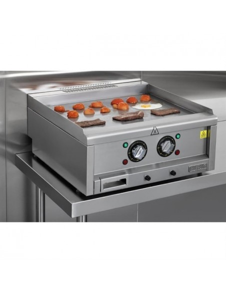 Featuring user-friendly dial controls, the Buffalo griddle makes it easy to regulate the temperature for both sides - so you can keep food warm on one zone, whilst cooking eggs or bacon on the other. Alternatively, you can completely power down one side to reduce running costs during quieter hours.