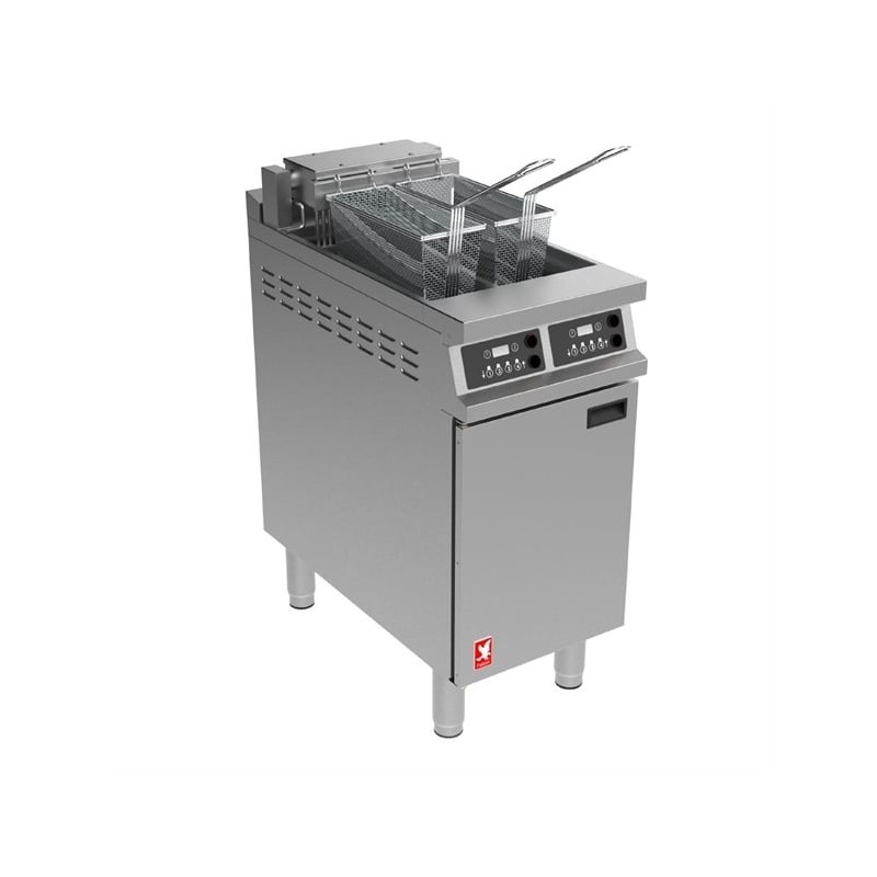 Falcon Dominator Plus E3845F2XP Twin Pan Programmable Electric Twin Filtration Angel Fryer on Feet