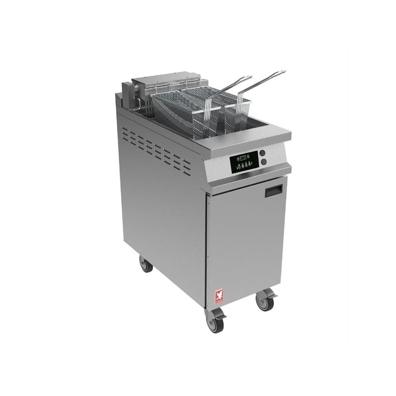Falcon Dominator Plus E3840FXP Single Pan Twin Basket Programmable Electric Filtration Angel Fryer on Castors