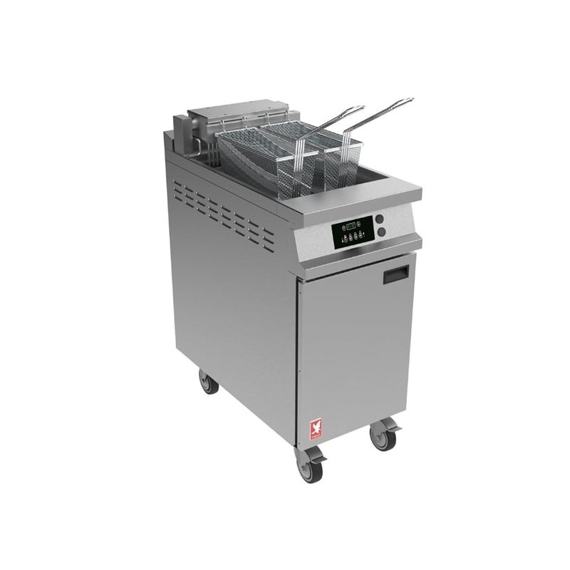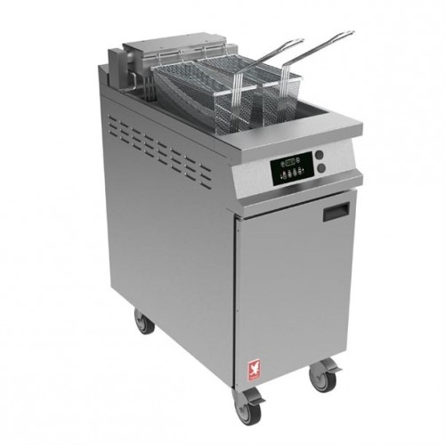Falcon Dominator Plus E3840XP Single Pan Twin Basket Programmable Electric Angel Fryer on Castors