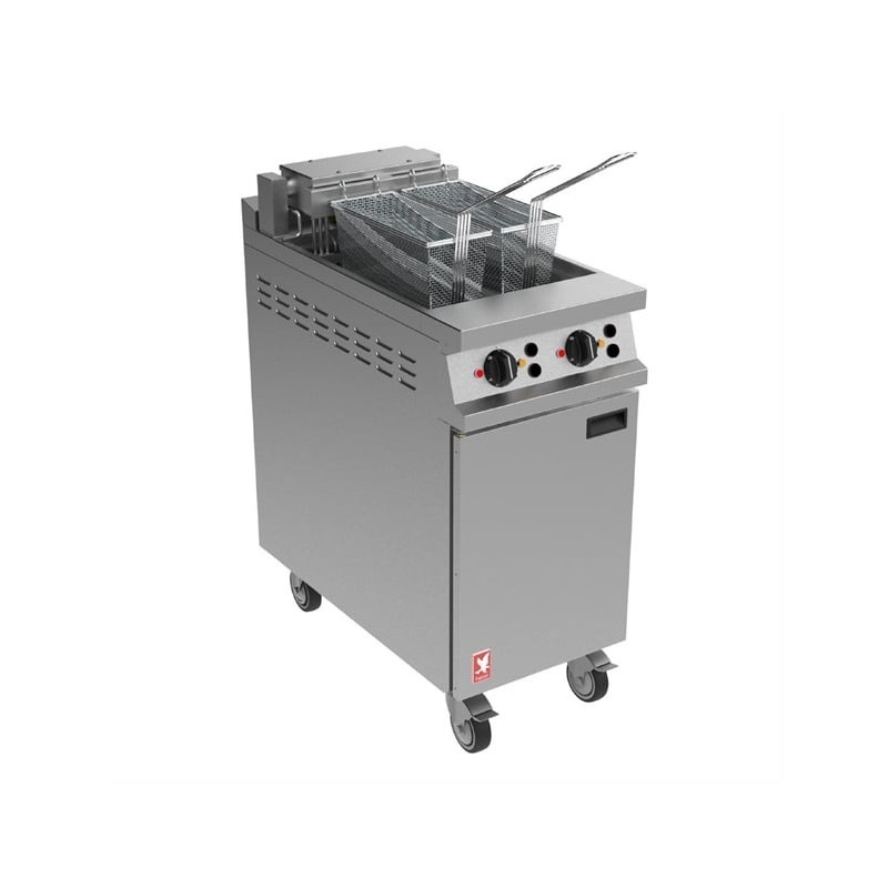 Falcon Dominator Plus E3845FX Twin Pan Electric Filtration Angel Fryer on Castors