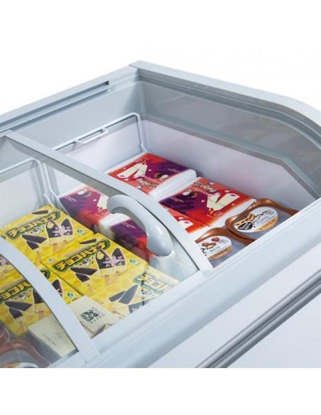 Elevate your frozen food presentation with the Polar G-Series chest display freezer, crafted to showcase products in an appealing and accessible way. More than just storage, this supermarket freezer doubles as a sales tool, featuring a sliding glass lid that allows customers to easily view and retrieve items like ice cream, ready meals, or frozen vegetables.