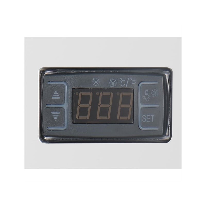 Easily manage temperatures with a precise digital control panel, ensuring consistent cooling throughout the unit. The rear sliding glass doors, which are removable, provide convenient access for serving customers or cleaning. This stylish, low-maintenance display fridge is an ideal solution for any front-of-house setting.