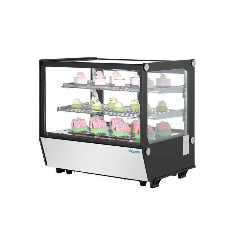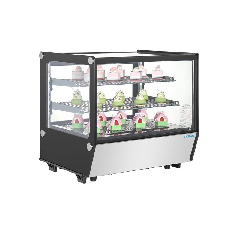 Elevate your merchandising with the 120Ltr Polar G-Series energy-efficient countertop display fridge, featuring a sleek square design and versatile adjustable shelves. Perfect for showcasing desserts, snacks, or canned drinks, this chiller maximizes sales while minimizing energy costs with its enhanced efficiency.
