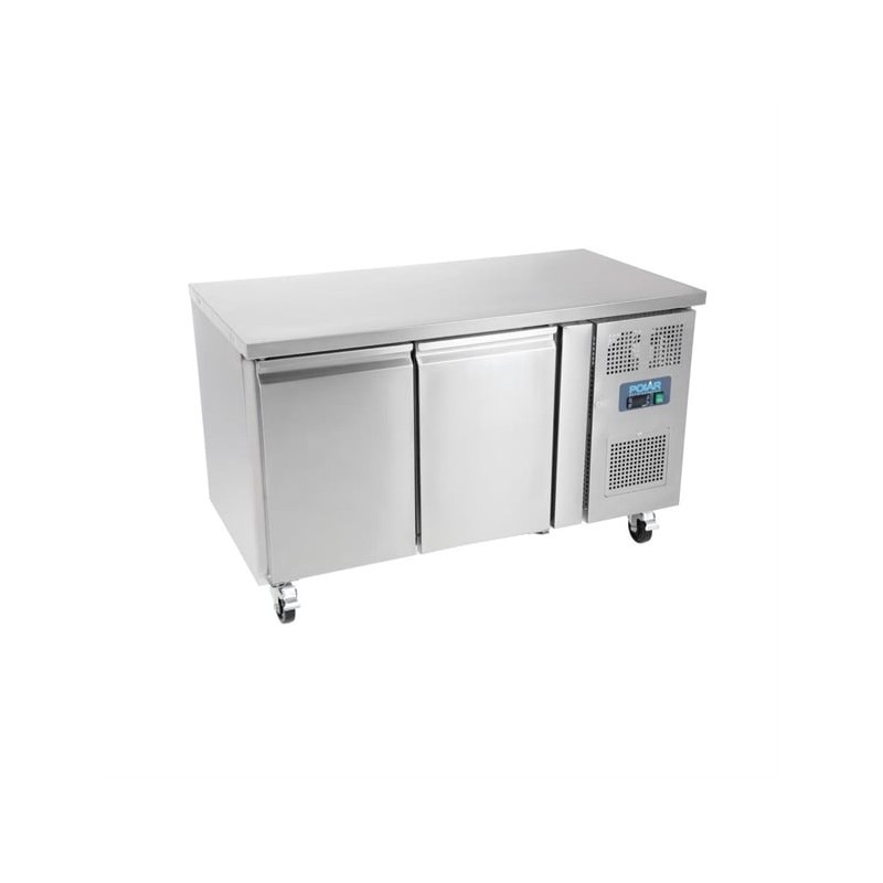 The Polar U-Series double door counter fridge combines high-capacity storage with a practical worktop, tailored for the demands of busy professional kitchens. Boasting an A-grade energy rating, this unit features advanced insulation and self-closing doors to minimize running costs while maintaining efficiency.
