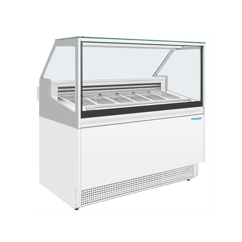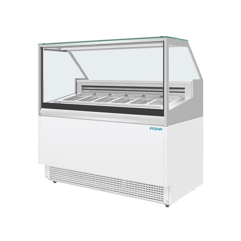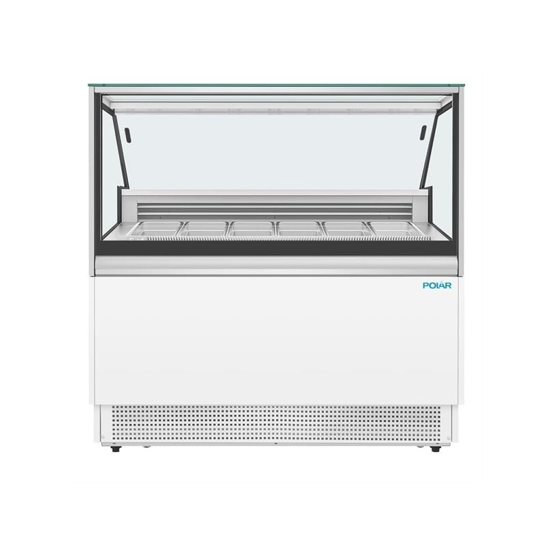 Elevate your dessert offerings with the Polar U-Series ice cream serve over cabinet freezer, a sleek and dependable solution designed to showcase and store your finest ice creams and gelatos.