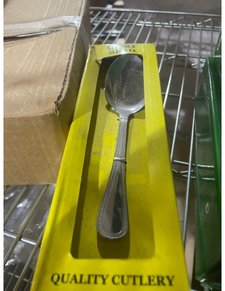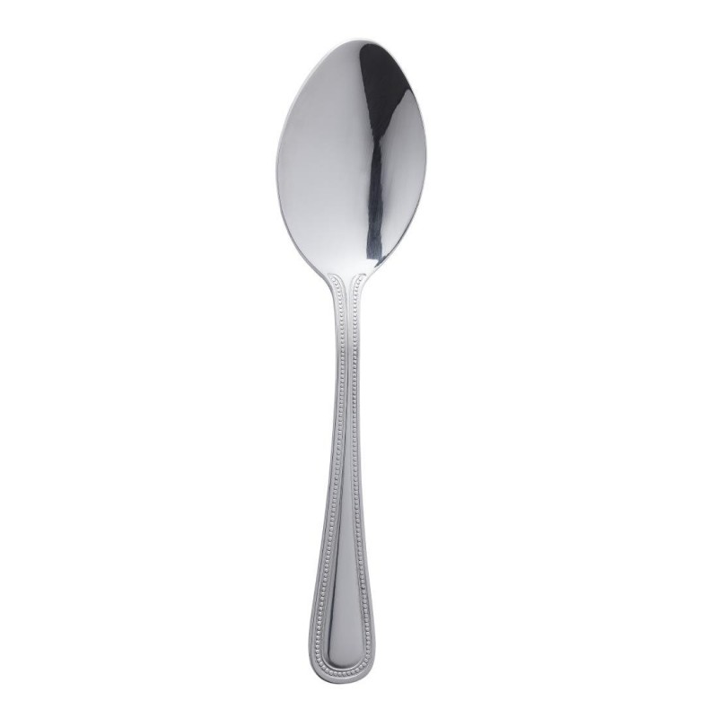 High polish finish 18/0 stainless steel with an attractive beaded border.