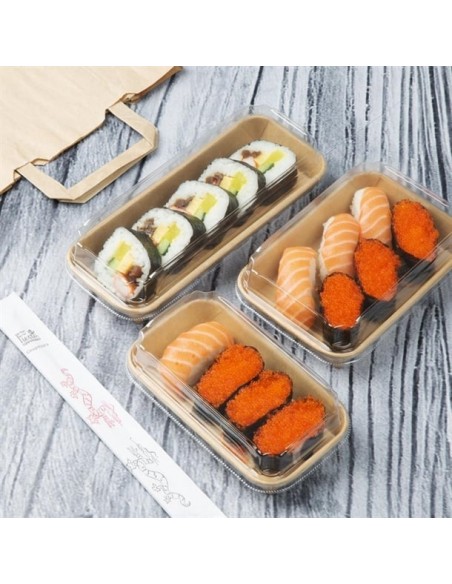 Fiesta Paper Food Trays are the ideal choice for serving a wide range of food-to-go, offering a sustainable and practical alternative to traditional plastic trays. Crafted from durable, recyclable paper with a non-stick lining, these trays ensure food remains intact and professionally presented, making them particularly perfect for sushi. They are also versatile enough to accommodate BBQ platters, brownies, cookies, pizza slices, and more. Designed for convenience, the trays pair seamlessly with Fiesta Recyclable PET lids (code HX292) to provide a secure, delivery-friendly packaging solution. Recyclable through specialist streams (check local facilities), these trays combine functionality with eco-conscious design, catering to businesses prioritizing both quality and sustainability.