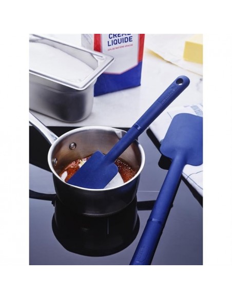 The spatula features an innovative Stop Glissé handle that allows it to rest on the edge of a bowl or pot, keeping your workspace cleaner and more efficient. The stain-resistant blue colour is ideal for working with vibrant ingredients like chocolate or tomato sauces, and its non-scratch design is safe for all surfaces.