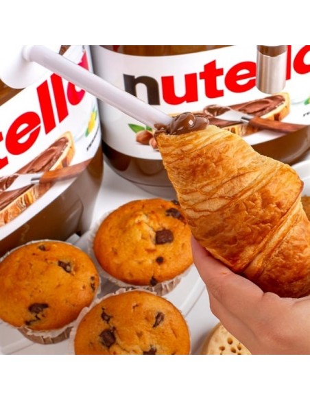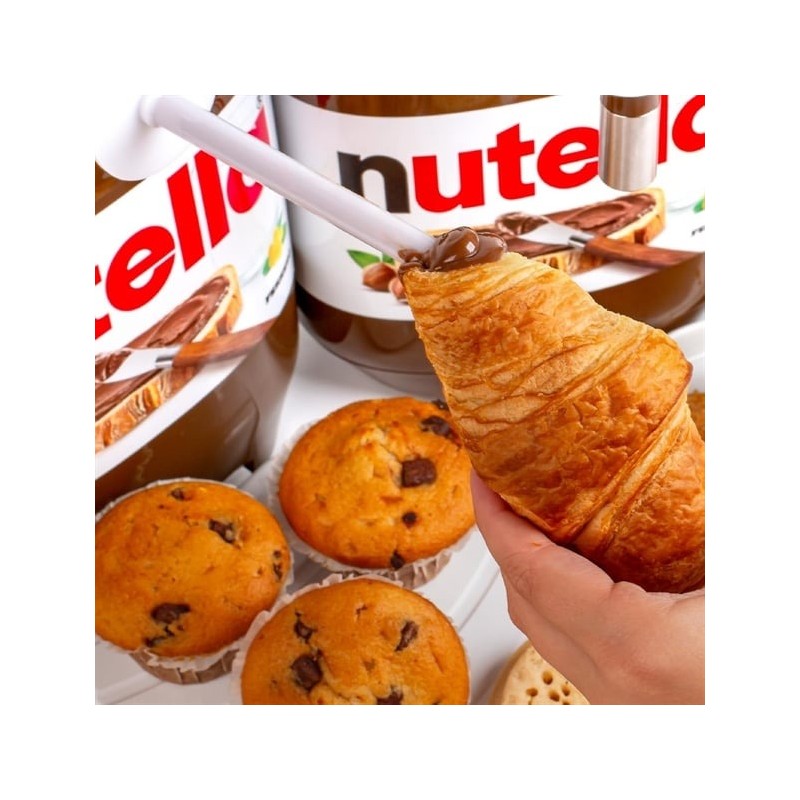 This countertop unit is as practical as it is eye-catching, featuring iconic Nutella branding that draws customer attention and enhances product appeal. Equipped with two dedicated spouts—one for topping and one for filling—it offers precision, versatility, and efficiency in busy foodservice environments.