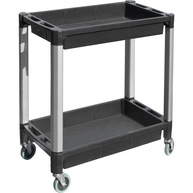 Professional Heavy Duty 2-Tier Plastic Utility Trolley with Raised Edge Trays & Steel Legs 136kg Capacity 760x410mm | Stalwar