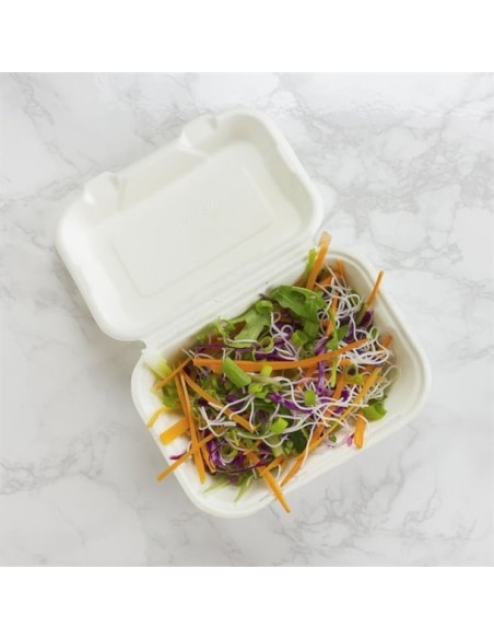 Vegware Compostable Bagasse Clamshell Hinged Meal Boxes 7"x 5" (500 Pack)
