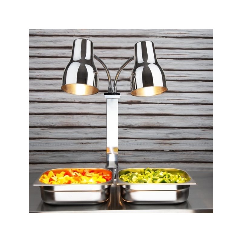 With its elegant copper-coloured stainless steel finish, this carving station complements any contemporary food display. The dual adjustable lamp heads allow for targeted heating across multiple trays or dishes, helping to minimise food waste and maintain food quality throughout service. Easy to install and operate, it simply plugs in – no hardwiring required.