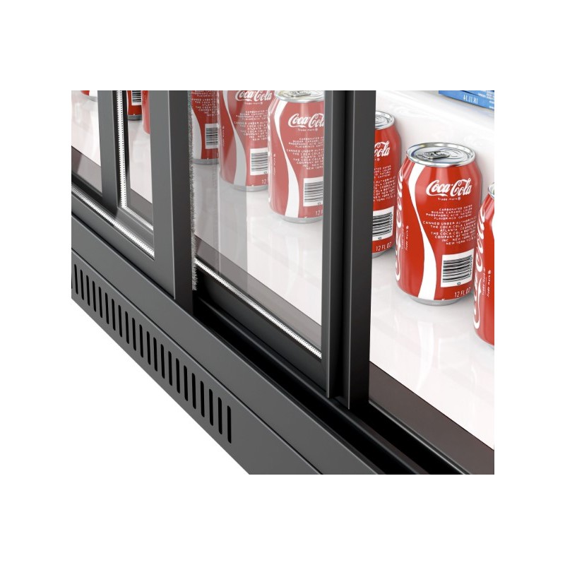 Triple Sliding Glass Doors – Large, clear tempered glass panels provide excellent visibility and quick access to drinks.