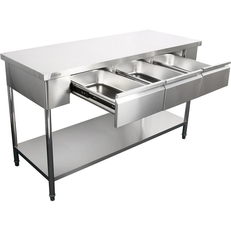 Premium Commercial Work table with 3 drawers Stainless steel Bottom shelf 1800x700x900mm | Stalwart DA-W218180703D