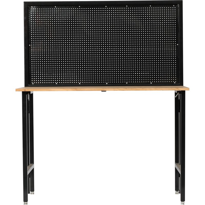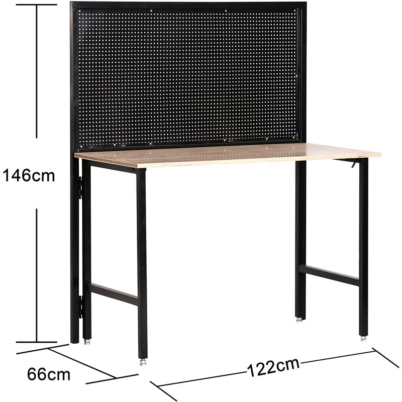 The durable 1.1mm thick steel frame and reinforced tabletop can handle up to 150kg, while the pegboard supports an additional 25kg of hanging tools—ideal for mechanics, carpenters, and anyone needing fast access to essential gear.