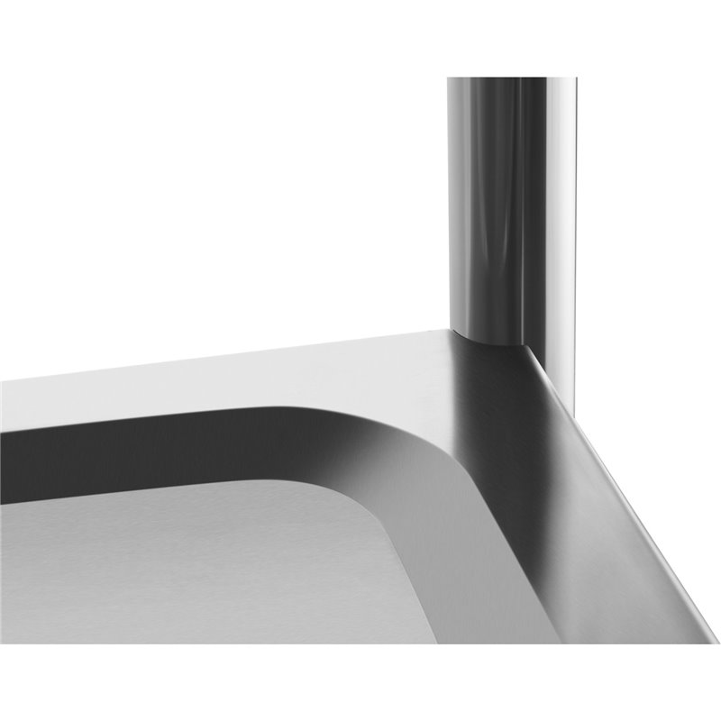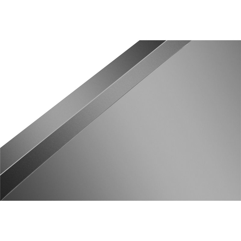 Sanded Stainless Steel Finish – smooth surface for a clean, modern look and easy maintenance; shelves are stretch-formed for added strength.