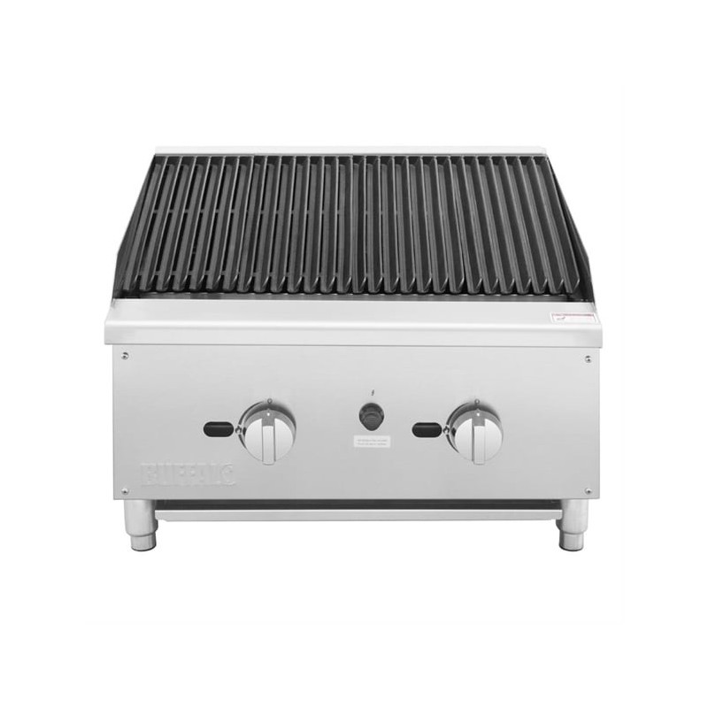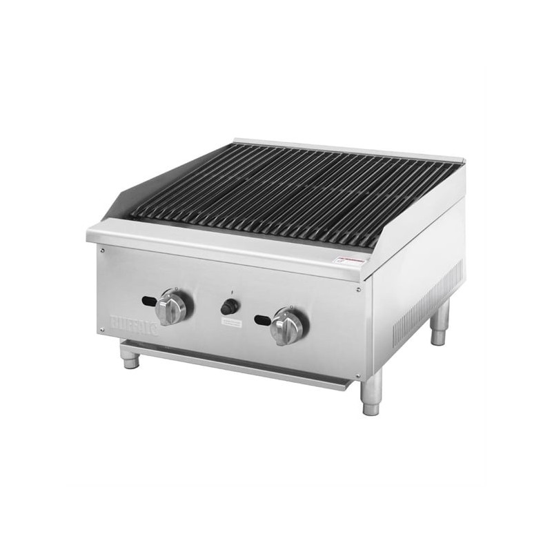 Engineered for demanding commercial kitchens, the Buffalo Freestanding Gas Chargrill delivers powerful and consistent performance. Featuring two robust U-shaped burners (30,000 BTU/hr each), this chargrill ensures even heat distribution across the generous 600mm-wide cooking surface—ideal for searing steaks, grilling vegetables, or delicately preparing seafood.