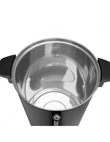 The matte black finish offers a sleek, professional appearance that stays cleaner for longer by resisting fingerprints and smudges — ideal for front-of-house use. Built for longevity, it features a concealed heating element for easier descaling, non-slip feet for added stability, and an external thermal safety reset to protect against boil-dry damage.