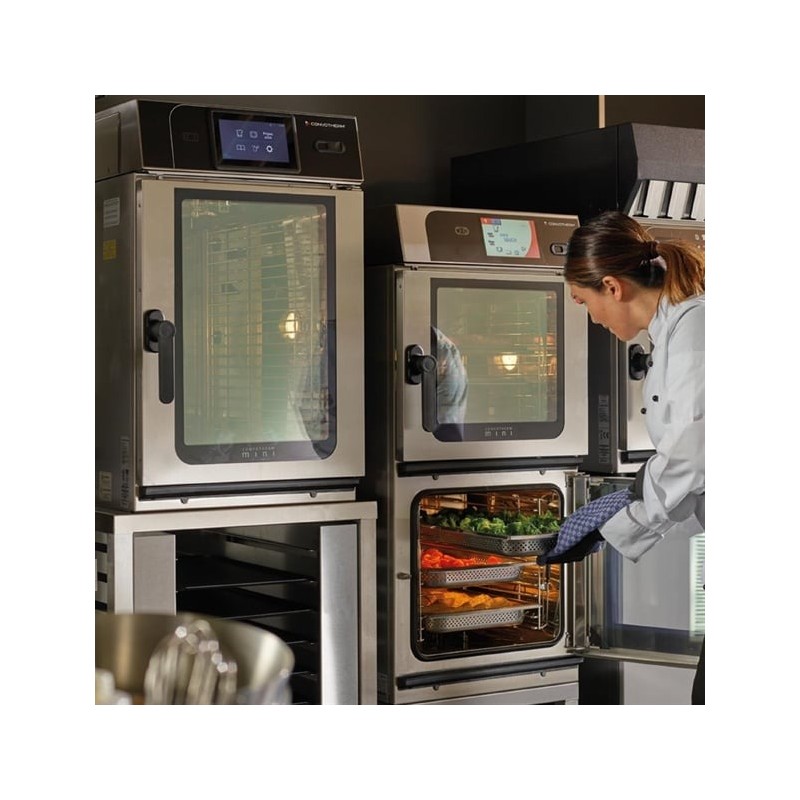 Designed to deliver exceptional cooking performance in even the most space-restricted kitchens, the Convotherm Mini 6.06 is a powerful and compact combi oven that doesn’t compromise on output. With a width of just 51.5cm, it fits seamlessly into small kitchens, food trucks, or front-of-house areas, while still offering a generous interior capacity.
