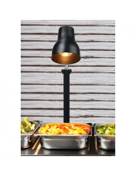 Designed for front-of-house use, the lamp features a sleek matt black finish and adjustable head, allowing you to easily direct heat and light where it's needed most. Whether you're showcasing roast meats, pastries or hot snacks, this portable solution helps maintain optimal serving temperatures while reducing food waste.