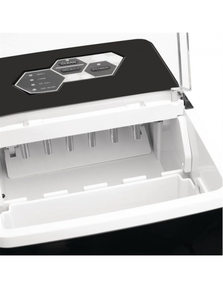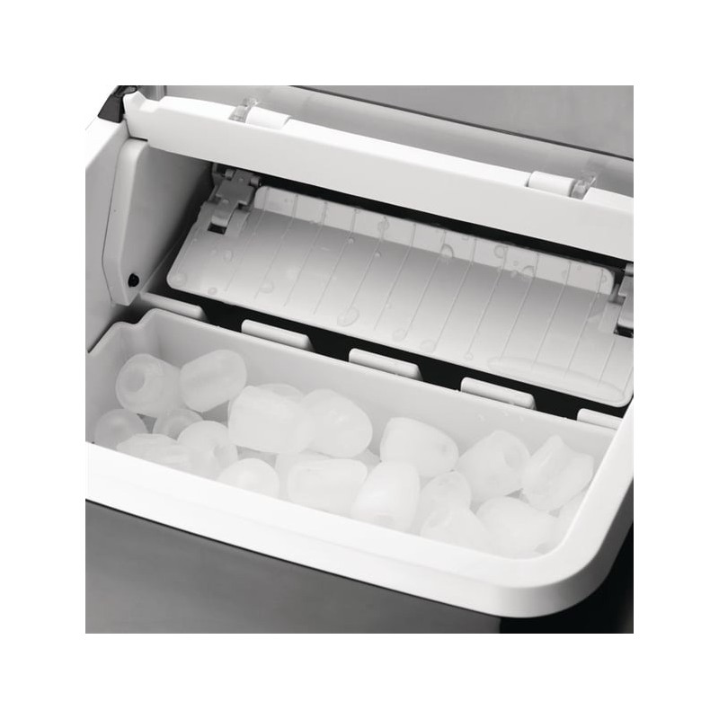 Producing up to 20kg of ice every 24 hours, the machine offers two ice size options (small or large) at the push of a button. With a 2-litre water tank, 0.7kg ice storage bin, and handy indicator lights for water levels and a full ice bin, operation is straightforward and maintenance minimal.
