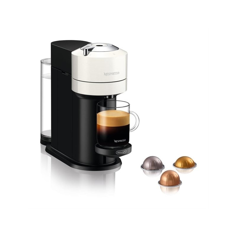 Brew the perfect cup every time with the Nespresso VertuoNext ENV120.W by De’Longhi. Designed with convenience and performance in mind, this sleek and compact coffee machine (only 5.5 inches / 142mm wide) fits effortlessly into any kitchen space.