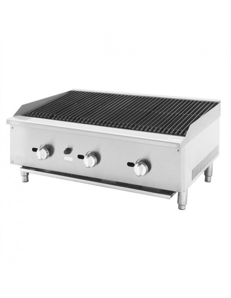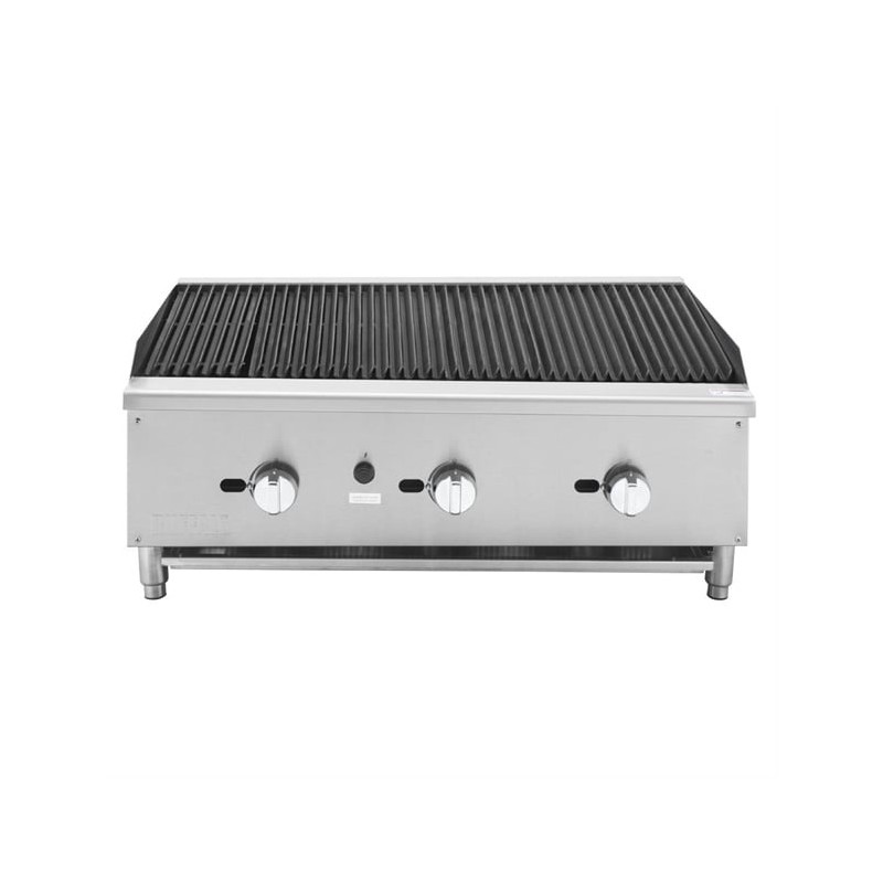 Delivering powerful, professional-grade performance, the Buffalo Freestanding Gas Chargrill is built to handle the high demands of busy commercial kitchens. With three robust 30,000 BTU/hr U-shaped burners, this heavy-duty unit provides even, high-intensity heat across a generous 900mm wide cooking surface — ideal for grilling everything from delicate fish to flame-seared steaks with precision.