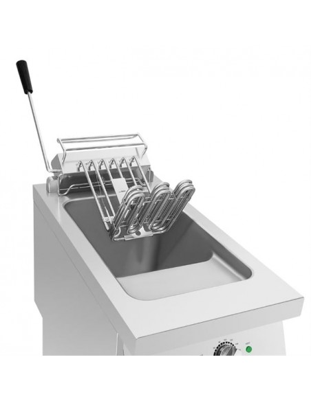 Designed with safety and efficiency in mind, the fryer also features a double thermal cut-out for added protection during operation.