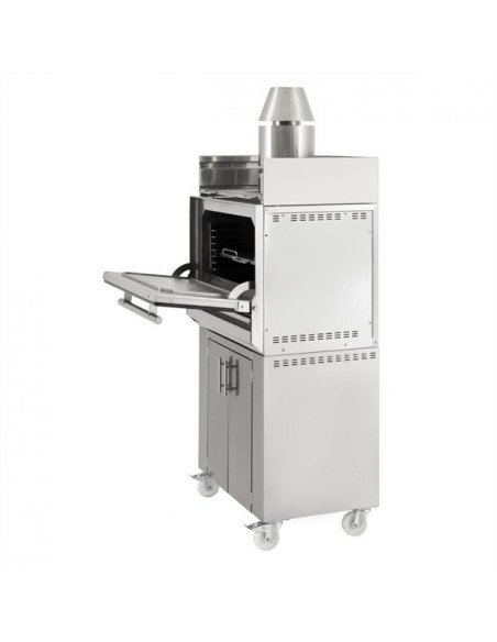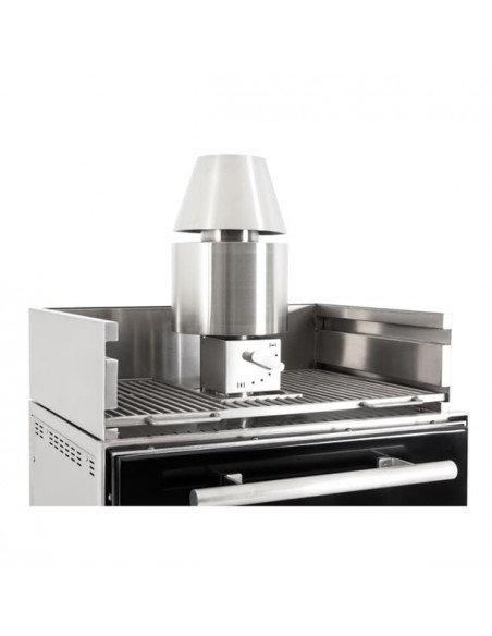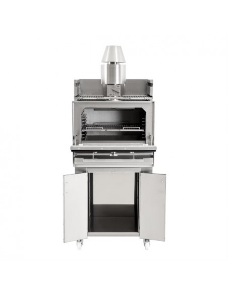 Built from durable stainless steel, it features high-grade insulation for fuel efficiency, a built-in thermometer, grease and ash drawers for easy cleaning, and a pull disabling system to enhance kitchen safety. The included stand with integrated storage ensures your tools stay organised and within reach.