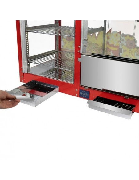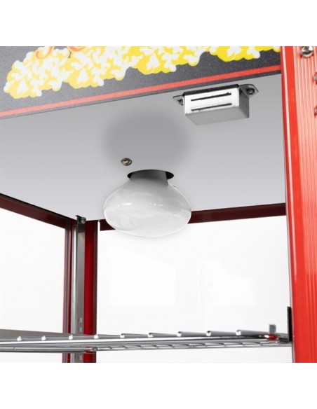 With its two-shelf design, the HX8872 allows you to easily organise and store multiple popcorn batches, helping to keep up with heavy customer traffic while maintaining an attractive presentation. The powerful built-in heating system ensures popcorn stays warm and appetising, supported by an internal light that enhances visibility and appeal.