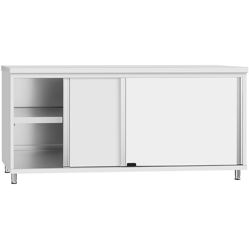 Commercial Stainless Steel Sliding Door Work Table Cabinet with Shelf 1800x600x850mm | Stalwart DA-QNH306