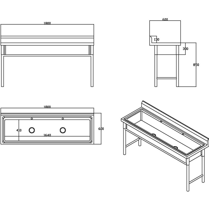 Dimensions: 1800mm (W) × 600mm (D) × 850mm (H)