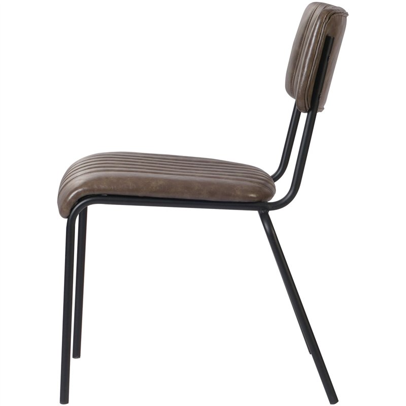 This dining chair combines industrial elegance with everyday functionality. Upholstered in stylish grey ribbed fabric, it offers comfort and a modern look. The sturdy metal frame with powder-coated legs ensures excellent stability and durability, making it perfect for dining rooms, cafés, bistros, or office breakout areas.