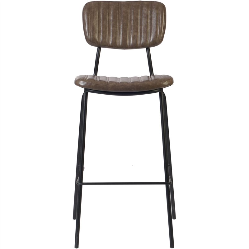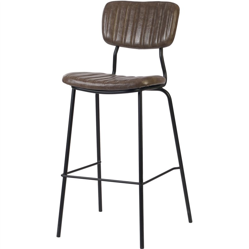 Elevate your space with this modern high-back bar stool, designed for both comfort and style. Upholstered in smooth grey ribbed fabric with subtle vertical stitching, it adds a contemporary touch to any kitchen island, bar, or dining area. The cushioned seat and supportive backrest ensure ergonomic seating, while the sturdy black powder-coated metal frame offers long-lasting stability.
