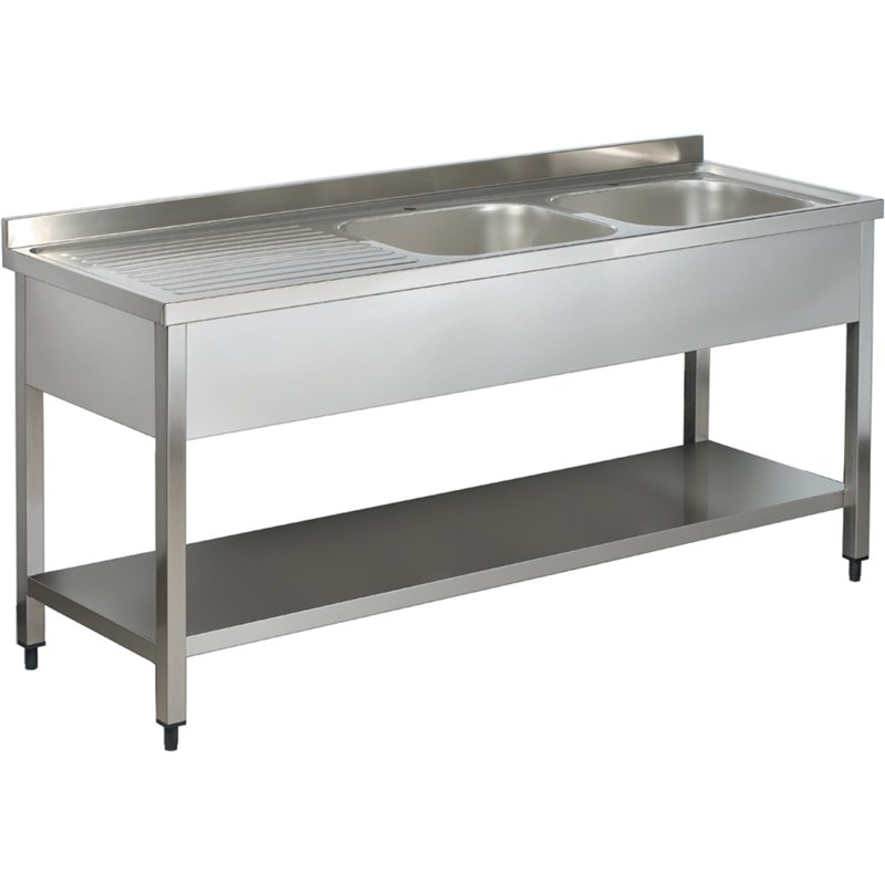Commercial Sink Stainless Steel 2 Bowls Right Bottom Shelf Splashback 1400x600x950mm | Stalwart DA-YLS146BR2
