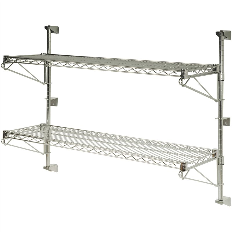 Upgrade your wall storage with this robust 2-tier wall-mounted wire shelf system, engineered for maximum strength, stability, and versatility. Constructed from high-quality carbon steel with a durable chrome-plated finish, this shelving unit is ideal for use in commercial kitchens, storage rooms, garages, and other demanding environments.