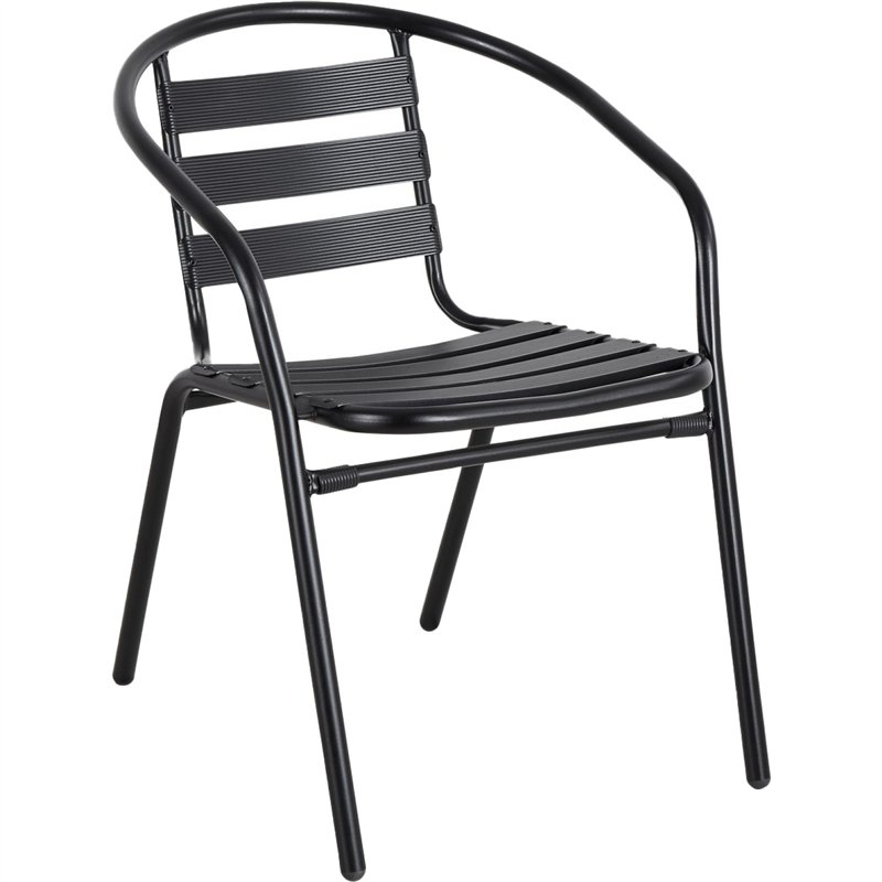 Bistro Dining Chair with Armrests Aluminium Frame Ribbed Plastic Slats Indoors & Outdoors Black | Stalwart DA-SC017C