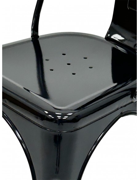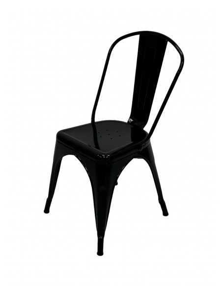 Their durability is a built-in feature with these chairs and they are designed for heavy industrial use. At the same time, this furniture is lightweight and easily stacked for storing making set up and tear down just as easy. These black metal tolix chairs are suitable for use for cafe’s and restaurants etc. They go well with our range of Tolix tables and have plastic feet to prevent scratching the floor. The seat height is 45 cm and they stack neatly for storage when not in use.